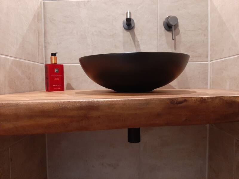 Suar hout boomstamblad kan ook voor de wastafel worden gebruikt.