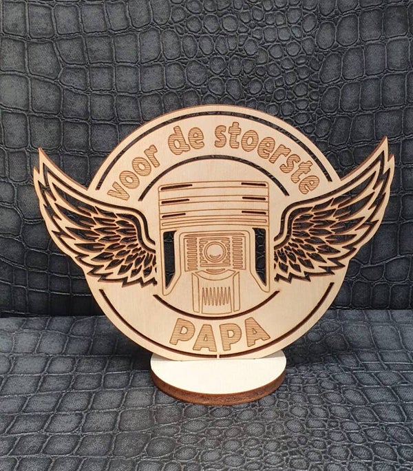 3D kaart op voet van hout: Voor de stoerste papa..met vleugels