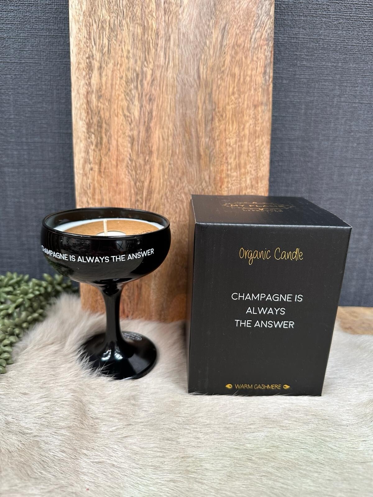 Te leuke geurkaars in een champagne coupe. De kaars is gemaakt van Biologische sojawas en is er in 3 geuren en teksten.