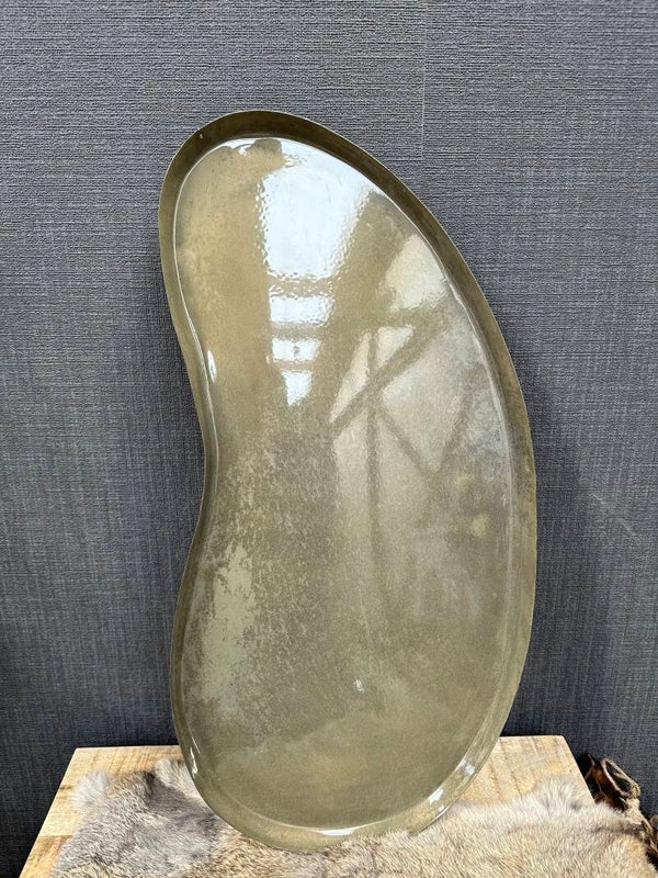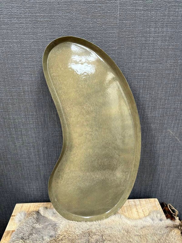Voeg een vleugje organische schoonheid toe aan je interieur met dit metalen dienblad in een olijf tint en organische vorm. Dit stijlvolle accessoire is perfect voor het serveren van lekkernijen of als decoratieve eyecatcher. Ontdek de perfecte harmonie tussen design en bruikbaarheid met deze metalen tray in olive en organische vorm. De afmetingen zijn