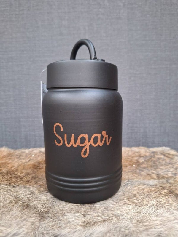 Ontdek ons stijlvolle zwarte bewaarblik goed afsluitende deksel, perfect voor het opbergen van koffie, thee en suiker! Dit elegante blik houdt je favoriete ingrediënten vers en beschermd tegen licht en lucht. Met een strak design past het moeiteloos in elke keuken. Of je nu een koffieliefhebber bent of een theedrinker, dit bewaarblik is de ideale oplossing om je keuken georganiseerd en stijlvol te houden. Voeg een vleugje klasse toe aan je keuken met ons zwarte bewaarblik!