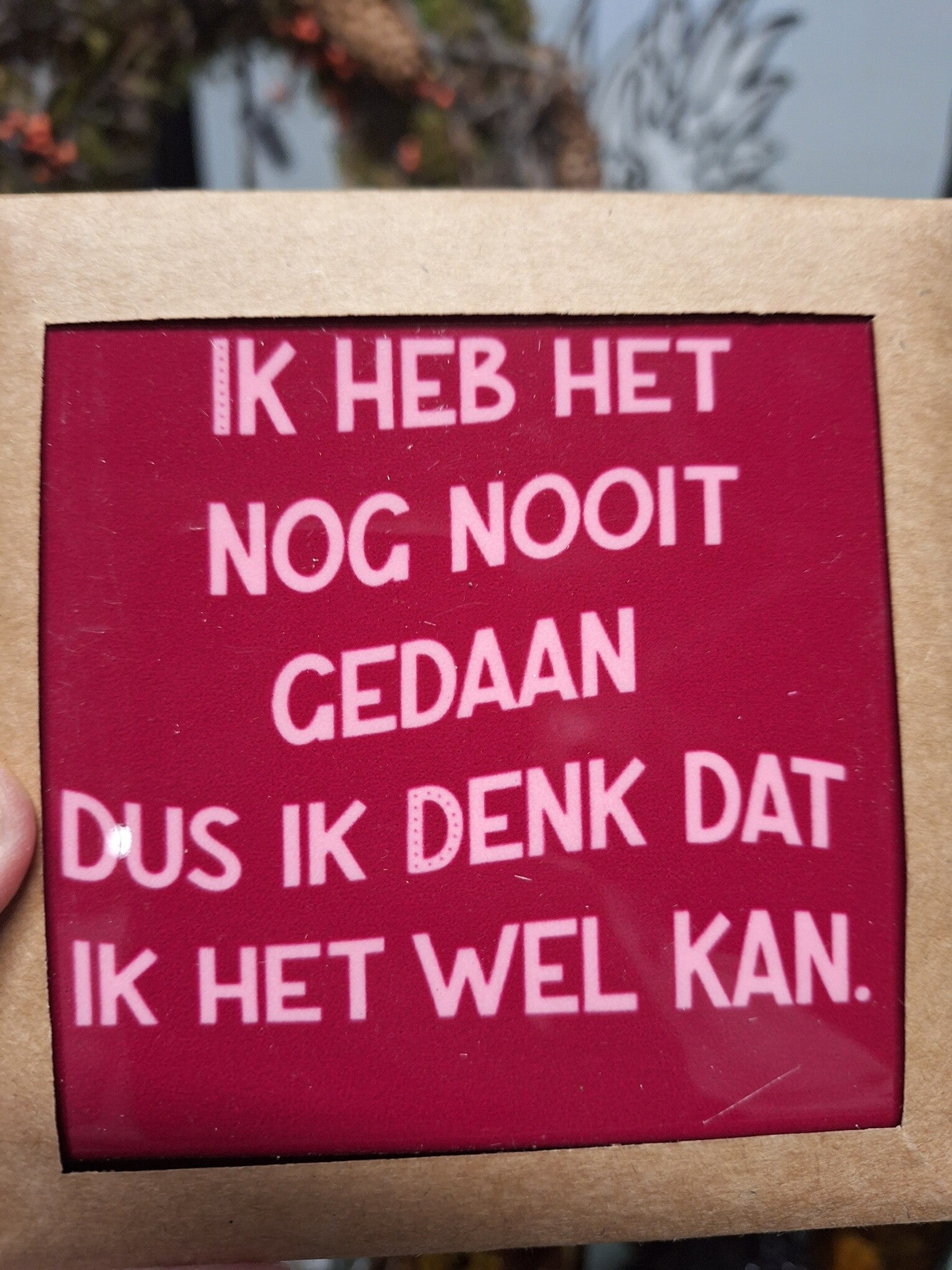 - Tegeltje met de tekst "Ik heb het nog nooit gedaan"