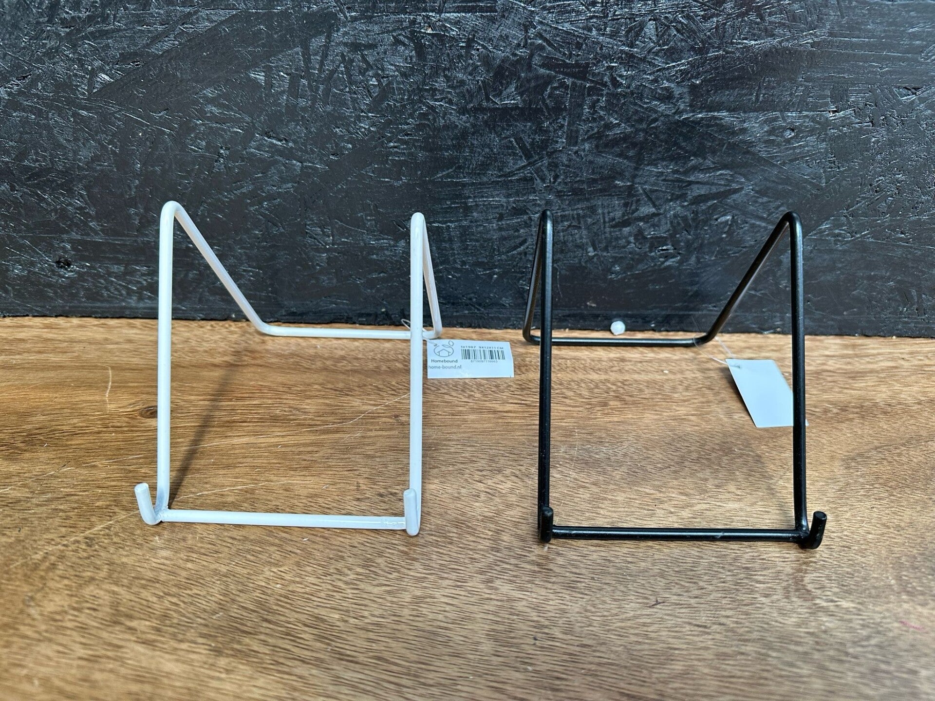 Een rekje voor een tegeltje met tekst is de perfecte manier om je favoriete spreuk of herinnering stijlvol te presenteren. Met deze houder komt het tegeltje goed tot zijn recht en eenvoudig te plaatsen op een bureau, plank of vensterbank. Voeg een vleugje persoonlijkheid toe aan je interieur met een tegeltje in een stijlvolle houder. De houder is er in zwart en wit.