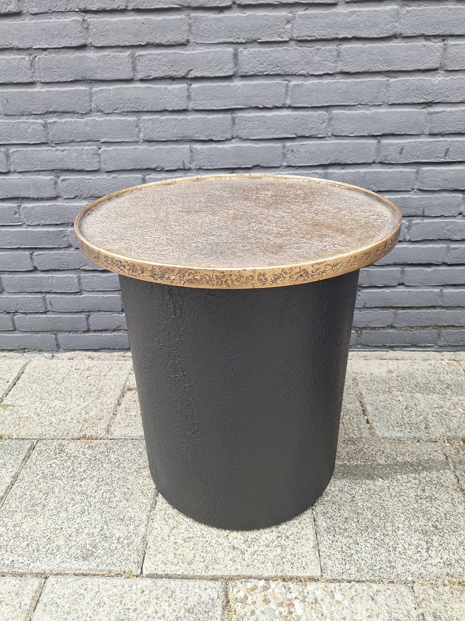 Stoere salontafels of bijzettafels in mat zwart en antique goud– in 3 maten