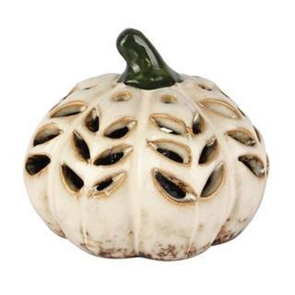 Decoratie pompoen | Aardewerk | Wit - Groen | Led verlichting | 2 Maten