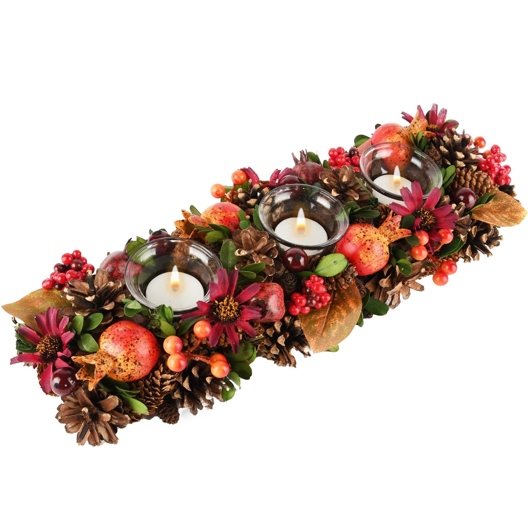 Tafelstuk bloemen & besjes rood/oranje – Herfstdecoratie 41x15x9cm