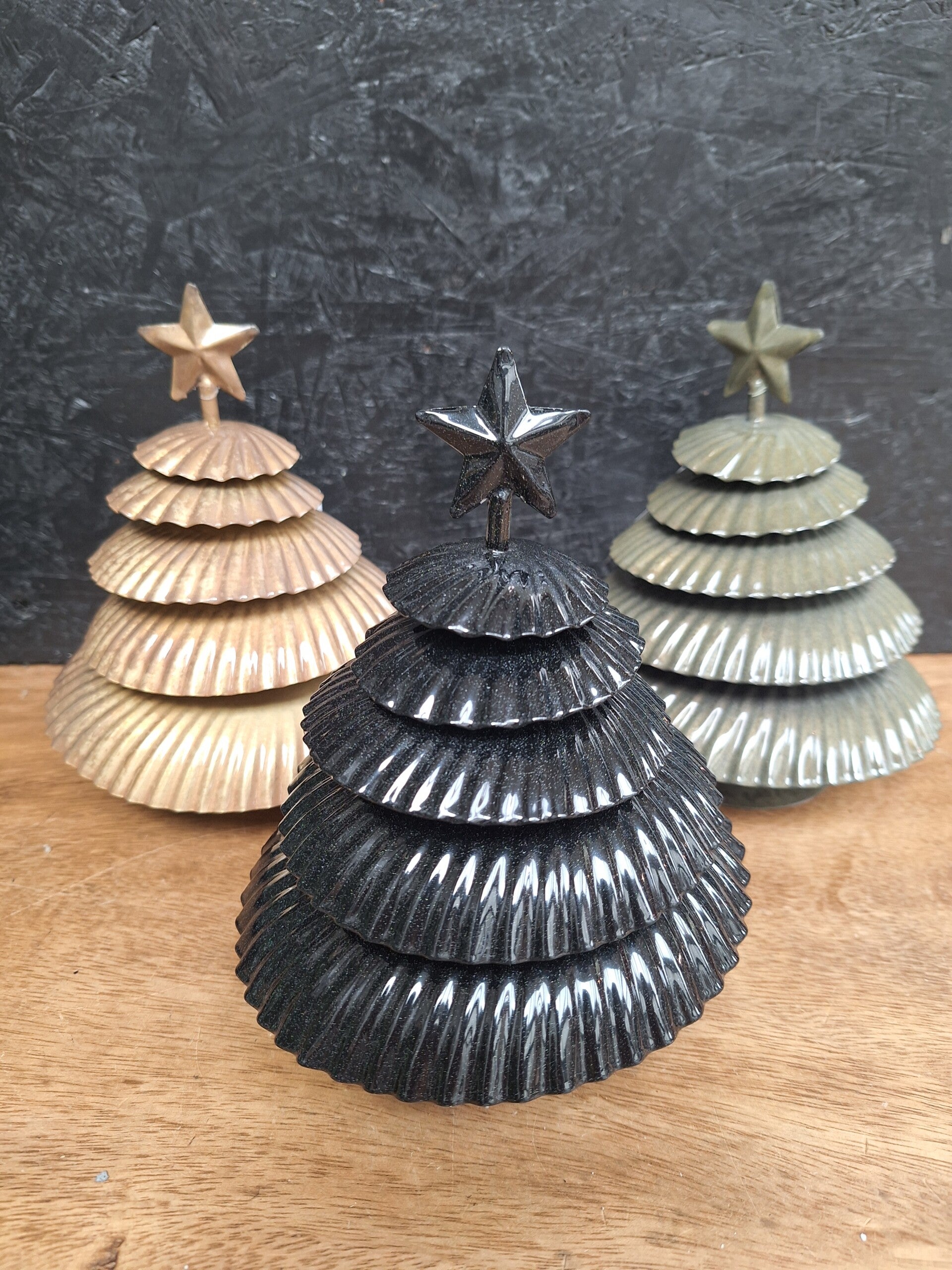 Metalen Kerstboom Ø13,5x18 cm – Olive, Zwart & Peach