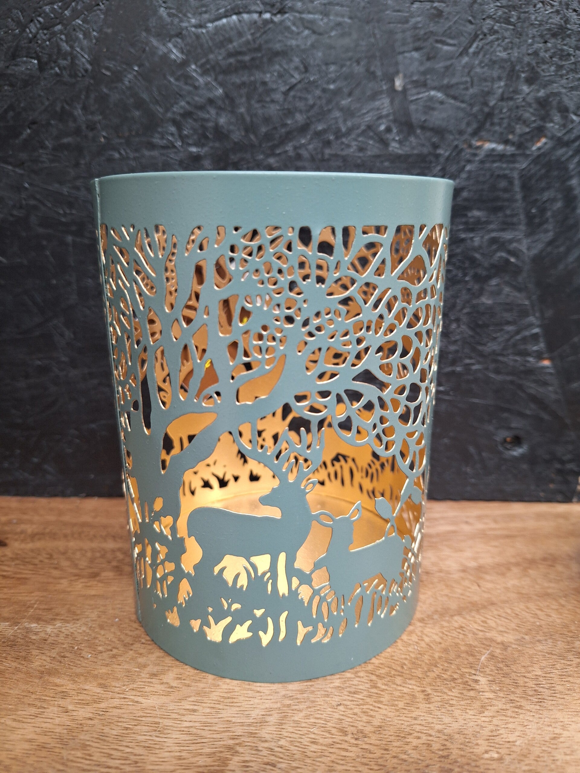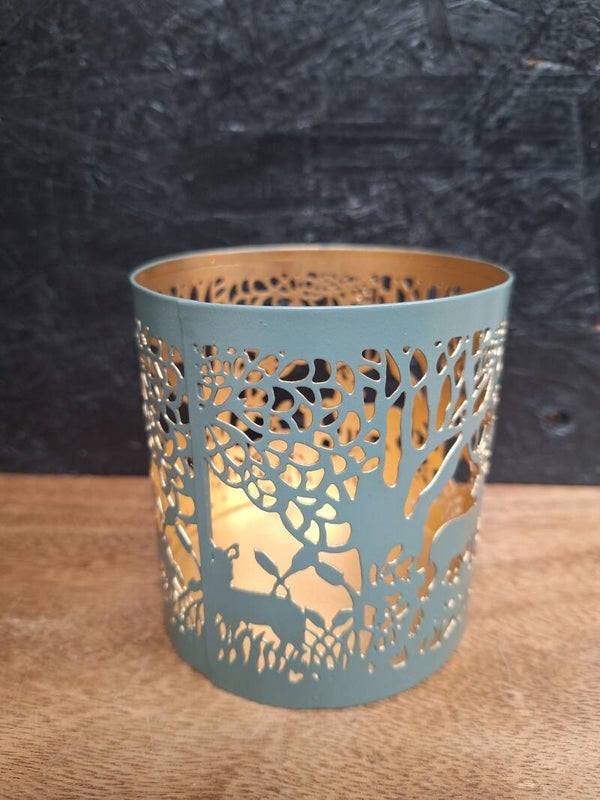 Kaarsenhouder Gazing Deer in groen-goud – Sfeervolle kerstdecoratie