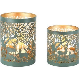 Laat je interieur stralen met de romantische Kaarsenhouder Gazing Deer in groen-goud. Met zijn verfijnde afwerking en elegante design is deze kaarsenhouder dé eyecatcher tijdens de feestdagen. Verkrijgbaar in twee maten, perfect om samen te combineren voor een warme en sprookjesachtige kerstsfeer.