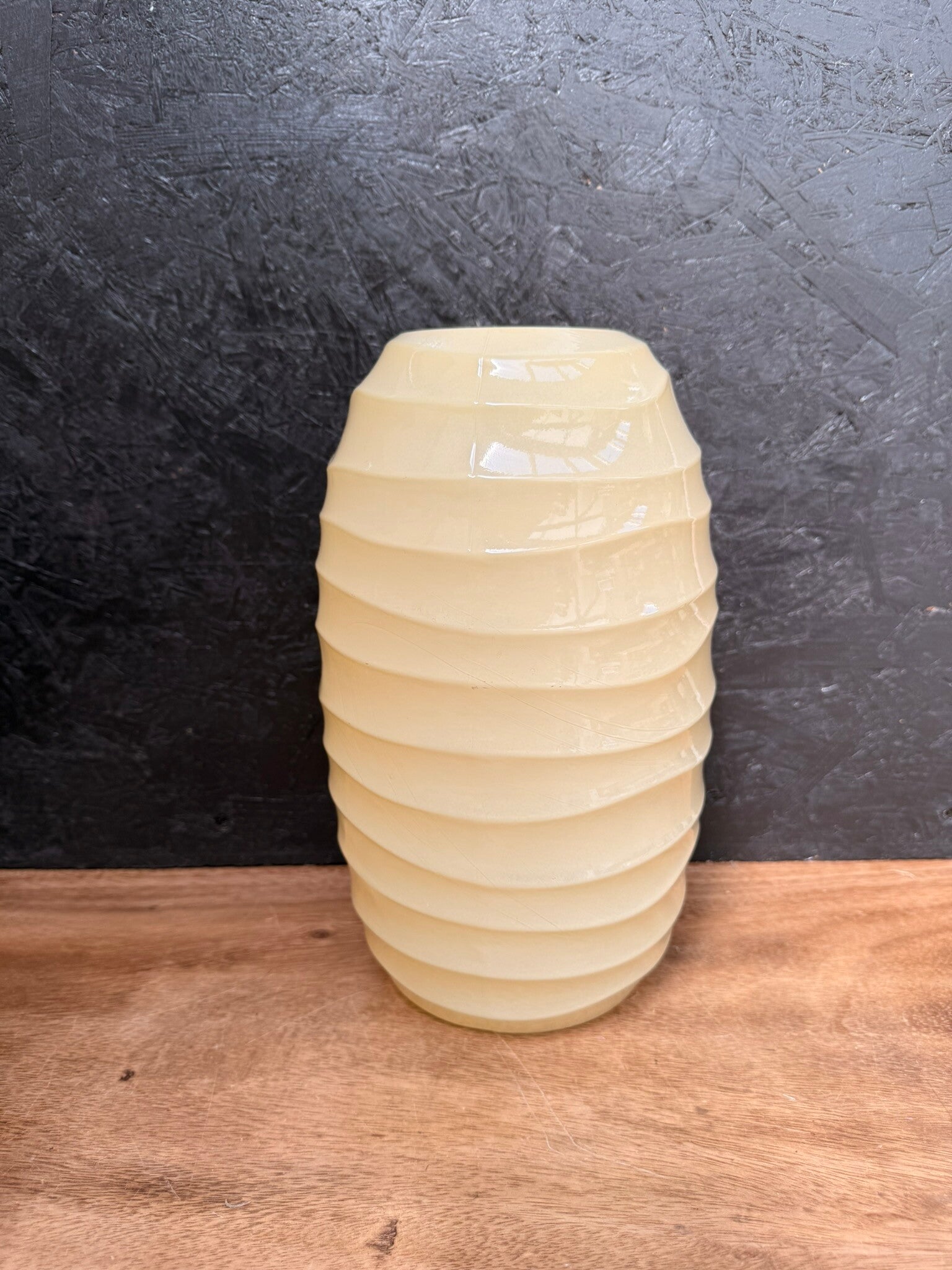 Kunstboeket hortensia blauw in gele glazen vaas