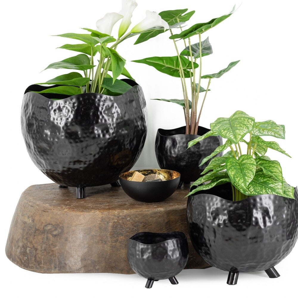 Metalen bloem pot zwart op potjes in 4 verschillende maten.