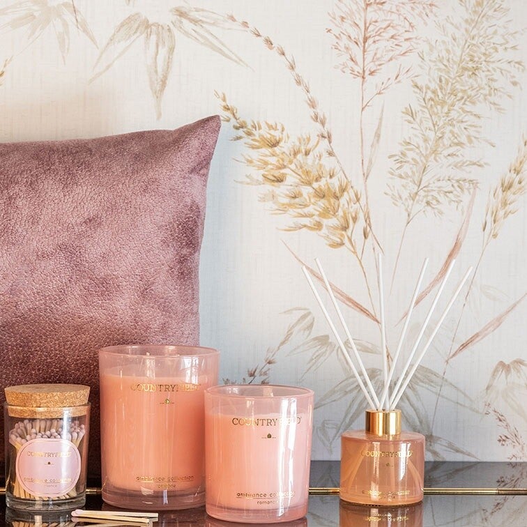 Aanbid de romantiek met Countryfield Romance. Geniet van een poederige en bloemige geur van zwarte bessen, iris, jasmijn, tonkaboon en vanille. Deze collectie bevat geurstokjes, -kaarsen en lucifers. De producten van Countryfield hebben een chique uitstraling en worden geleverd in een mooie cadeauverpakking.